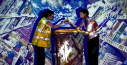 Création originale à partir d'expériences de tri et de recueils de témoignages auprès d'ouvrières, ouvriers et directeurs de différents centres de traitement, de stockage et de valorisation des déchets : Centre de traitement du verre ménager (IPAQ Lavilledieu), Centre de stockage des déchets ultimes (COVED Roussas), Verrerie O.I (Labégude), Centre de tri des poubelles jaunes (Plancher Environnement).