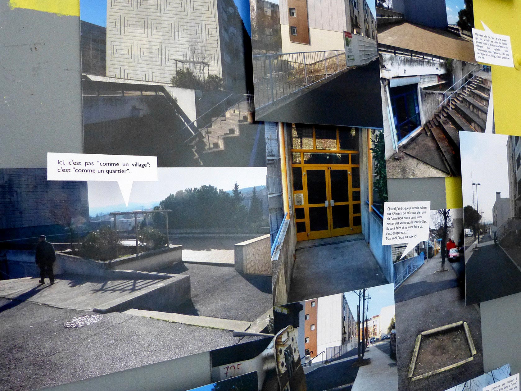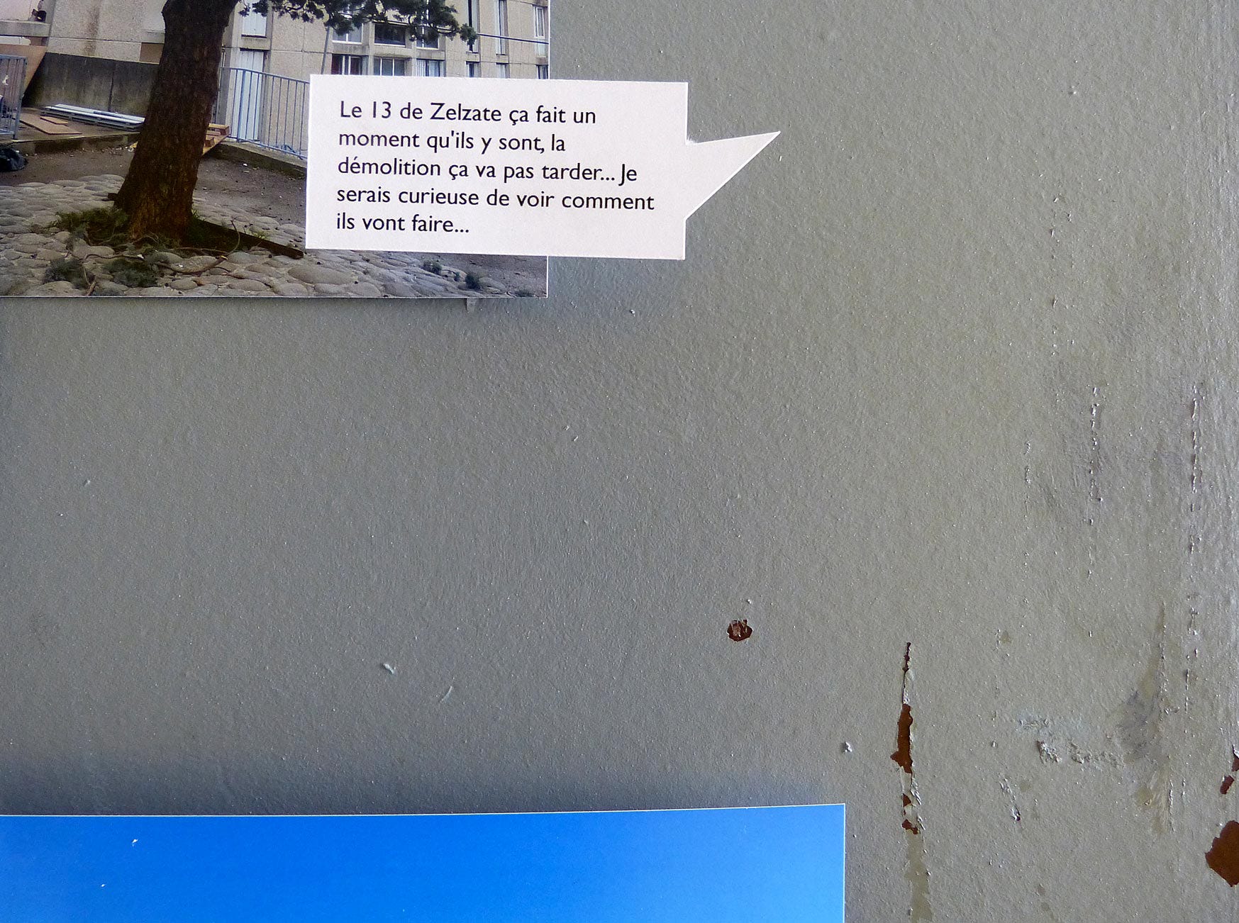 A partir de 2009 et jusque fin janvier 2015, dans le cadre de l’accompagnement artistique de la rénovation urbaine d’un quartier classé "zone sensible", PPP mène plusieurs actions : recueil de paroles, d’images et de sons auprès des habitants ; affichage dans les cages d’escaliers ; goûters-projection ; ateliers auprès d’enfants et d’adultes ; installations (expo. photo-théâtre) ; réalisation de court-métrages ; petites formes en appartement, etc.