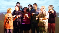 Spectacle pour 1 vidéo-jockey, 2 comédiennes, 1 Choeur de quartier. Écrit à partir de témoignages recueillis auprès d'une vingtaine d'habitants, au cours d'entretiens individuels et collectifs.